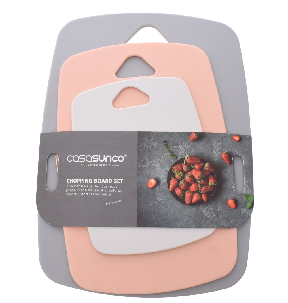 3 Piece Colored Rectangular Cutting Board Set crafted from high quality plastic. Perfect for chopping vegetables, fruits, and meat. The 3 Piece Colored Rectangular Cutting Board Set is crafted with quality materials to ensure durability and practicality. Perfect for everyday kitchen use, it offers a strong, reliable tool for serving, mixing, or cooking, while maintaining an elegant and professional design.