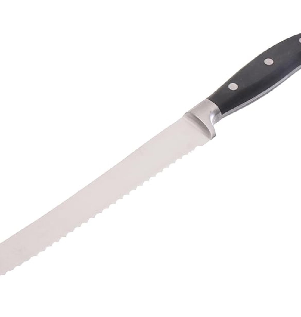 5-inch serrated stainless knife with black stainless–Bakelite handle