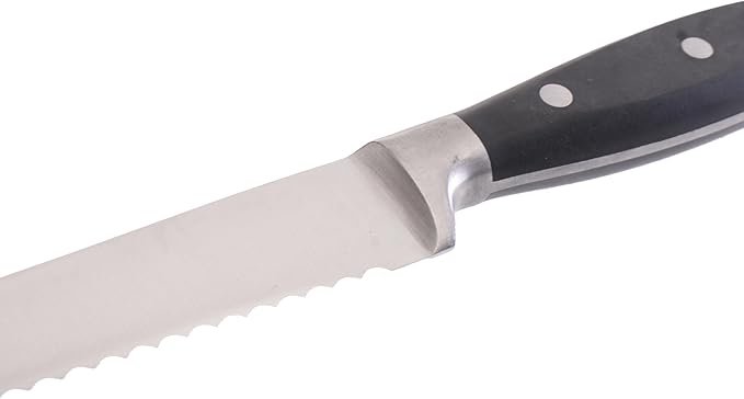 The 8-inch serrated stainless knife with Bakelite handle is designed with quality and functionality in mind. Crafted from premium materials, it offers a strong and stable surface for cutting and chopping. Durable, easy to clean, and resistant to stains, this cutting board is perfect for everyday use in any kitchen. A reliable choice for home cooks and professionals alike.