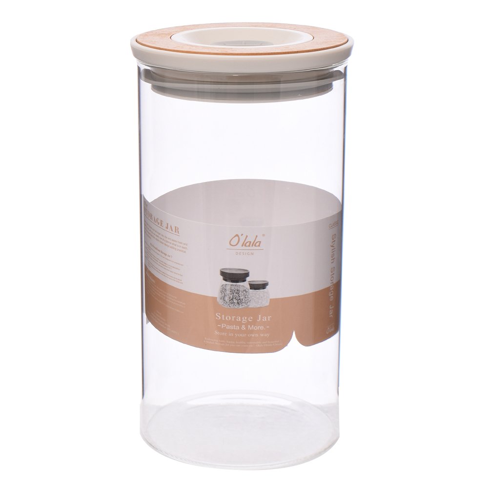 Glass Spice Jar with Wooden*Silicone Lid. The Glass Spice Jar with Wooden*Silicone Lid is crafted with quality materials to ensure durability and practicality. Perfect for everyday kitchen use, it offers a strong, reliable tool for serving, mixing, or cooking, while maintaining an elegant and professional design.
