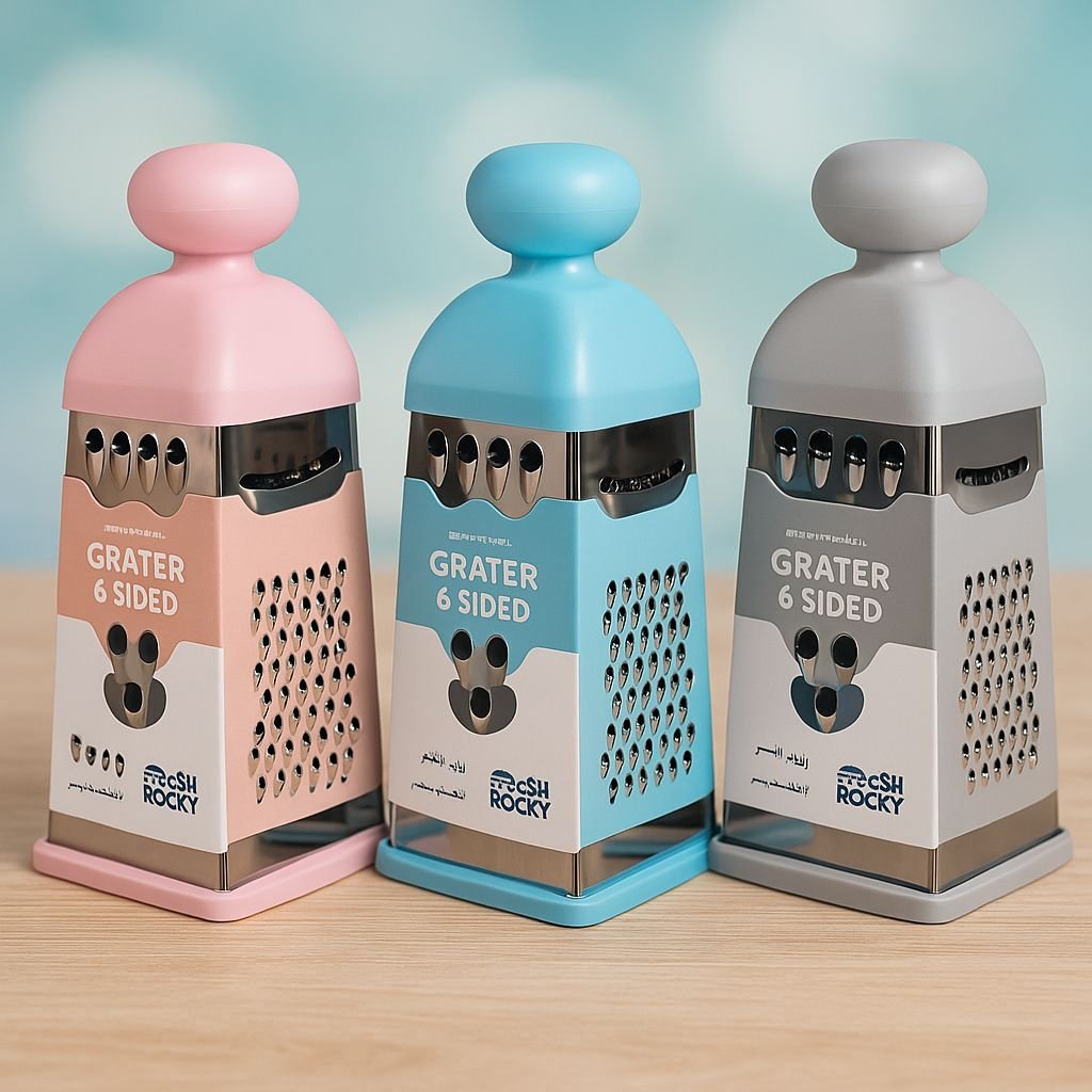 Jumbo 6 Sided Grater 9 . The Jumbo 6 Sided Grater 9 is crafted with quality materials to ensure durability and practicality. Perfect for everyday kitchen use, it offers a strong, reliable tool for serving, mixing, or cooking, while maintaining an elegant and professional design.