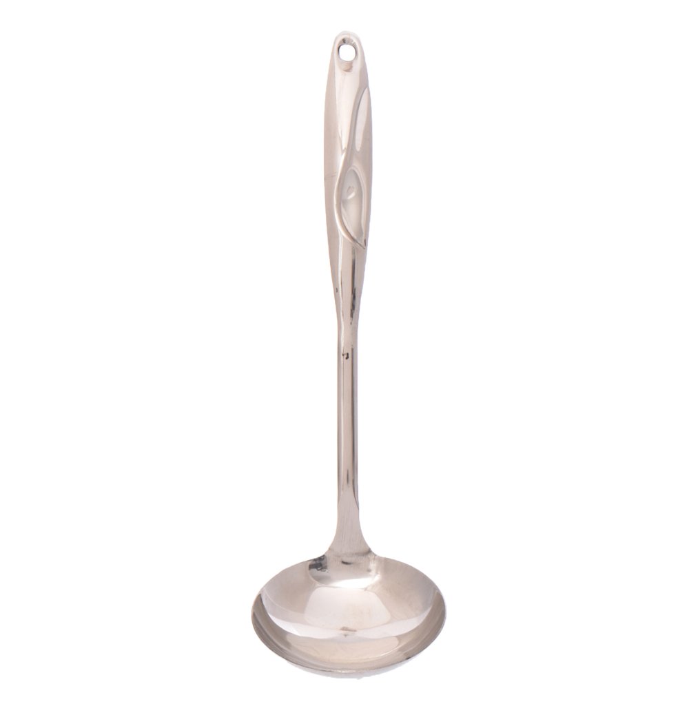 Ribbed handle stainless ladle . The Ribbed handle stainless ladle is crafted with precision and durability. Featuring a ribbed handle for enhanced grip and comfort, this stainless steel ladle ensures control while serving hot or liquid dishes. Its high quality build is resistant to rust, stains, and wear.