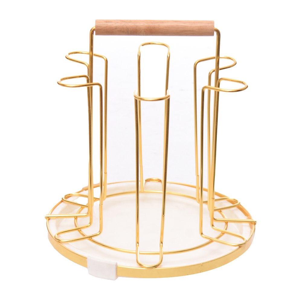 Round Golden Cup Holder with Wooden Handle