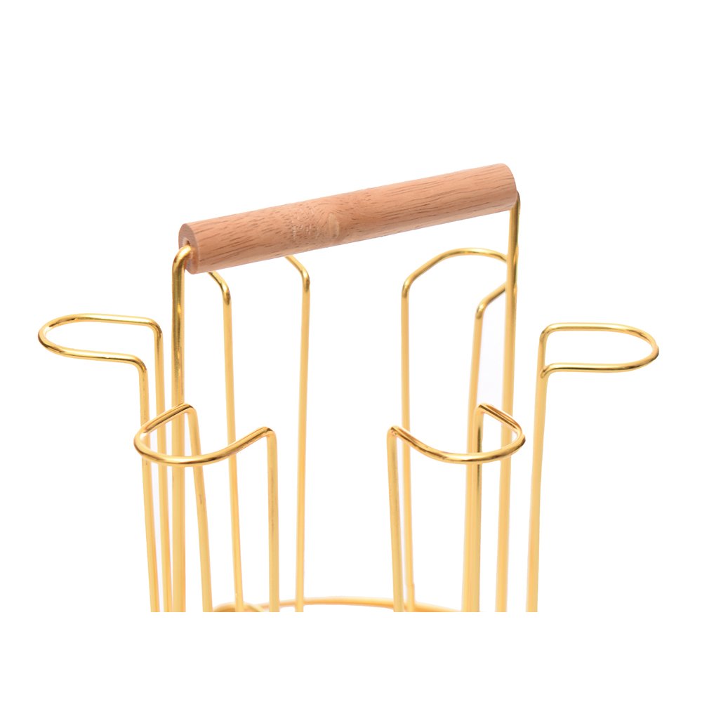 Round Golden Cup Holder with Wooden Handle . The Round Golden Cup Holder with Wooden Handle is crafted with quality materials to ensure durability and practicality. Perfect for everyday kitchen use, it offers a strong, reliable tool for serving, mixing, or cooking, while maintaining an elegant and professional design.