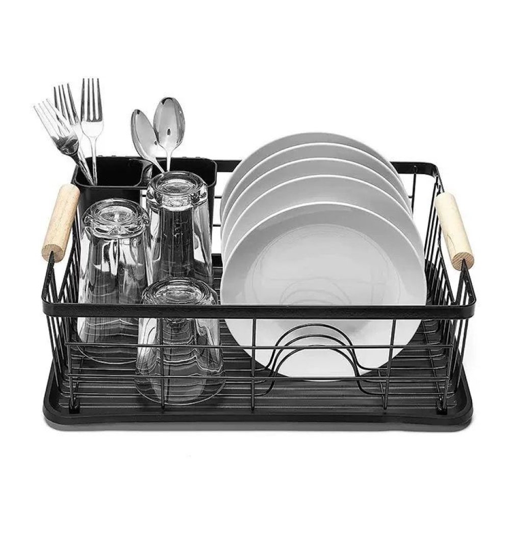 Stainless Dish Rack with Wooden Handle . The Stainless Dish Rack with Wooden Handle is crafted with quality materials to ensure durability and practicality. Perfect for everyday kitchen use, it offers a strong, reliable tool for serving, mixing, or cooking, while maintaining an elegant and professional design